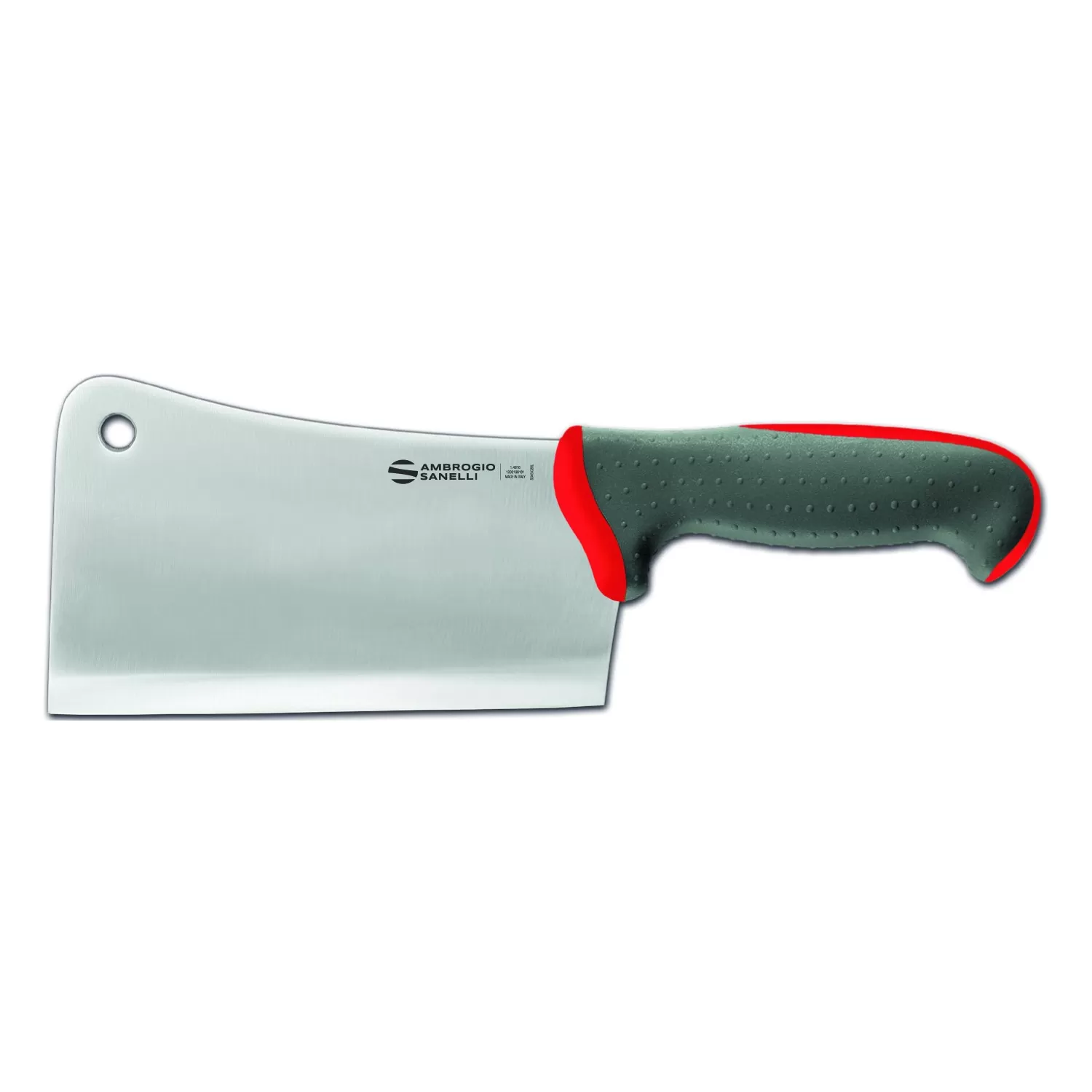 Nuova linea di coltelleria professionale con manico a doppio stampaggio e lame in acciaio inossidabile al cromo, molibdeno e vanadio X50CrMoV15. Il manico è costituito da unanima interna in materiale plastico rigido ed indeformabile, unito con la massima sicurezza al codolo di acciaio, e da un rivestimento esterno più morbido in gomma termoplastica. I due materiali aderiscono perfettamente in modo da formare un corpo unico al tatto. La parte più esterna, di colore grigio, è inoltre stata progettata con micro-sfere che ne esaltano lergonomia, limitando la scivolosità e favorendo il comfort. Tutti i materiali utilizzati sono atossici, sterilizzabili, adatti al lavaggio in lavastoviglie, resistenti alle alte e basse temperature e conformi alle normative vigenti in tema di igiene e sicurezza alimentare.