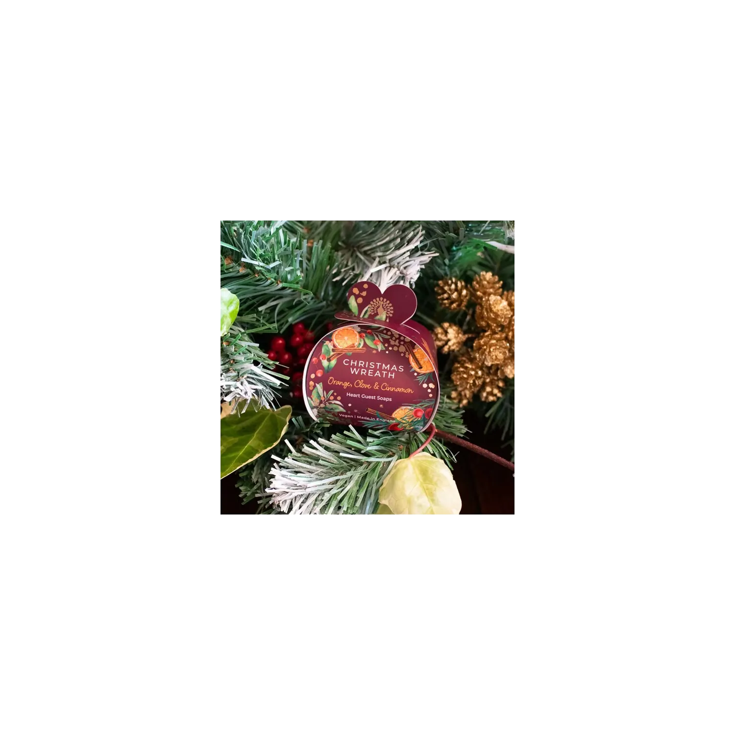 The English Shop, Confezione 3 saponette a forma di cuore - Christmas Wreath - Lamart.