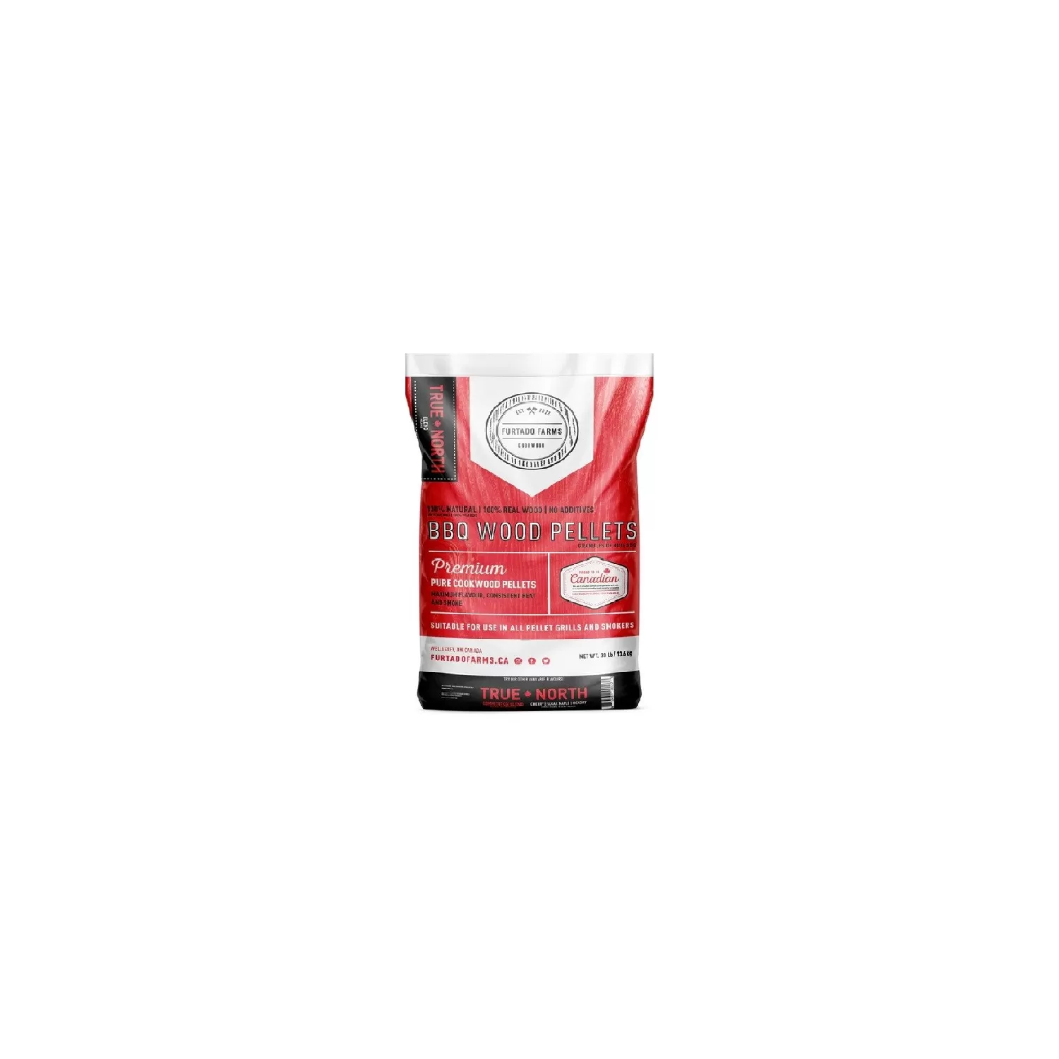 PELLET BBQ FURTADO FARMS TRUE NORTH 13,6Kg. Da 6 anni dichiarato il miglior pellet da BBQ in Canada, grazie al suo potere calorifico migliore degli altri pellet in commercio, si caratterizza per aromi intensi e caratteristici delle varie essenze.