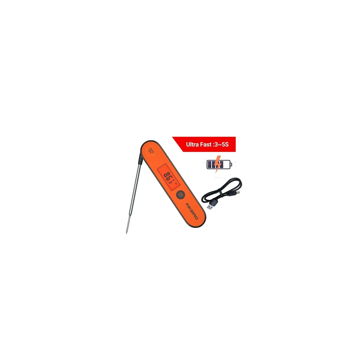 INKBIRD IHT-1P è un dispositivo indispensabile per la cucina di precisione in casa, che fornisce letture rapide della temperatura in soli 3-5 secondi, coprendo un intervallo da 58°F a 572°F o da 0°C a 300°C con una precisione di ±2°F o ±1°C. Grazie alla funzione di blocco della lettura, le misurazioni possono essere mantenute anche dopo aver estratto la sonda. La batteria ricaricabile al litio da 250 mAh offre 10 ore di utilizzo continuo con la retroilluminazione accesa e il suo design impermeabile semplifica la pulizia. Inoltre, questo termometro da cucina è facile da usare, si ripiega per riporlo facilmente e ha un retro magnetico per un comodo fissaggio al forno o al frigorifero.