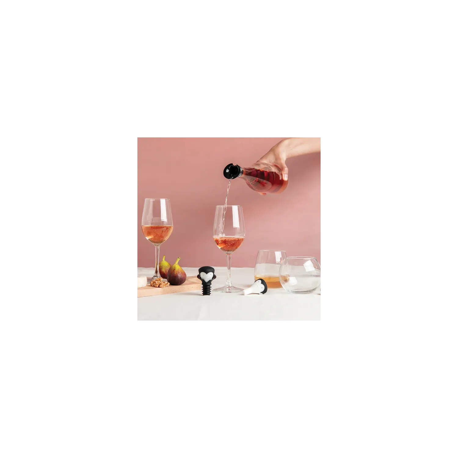 Stappa il fascino notturno del nostro tappo di vino e pourer, che affonda con entusiasmo le sue zanne nelle tue bottiglie incompiute.