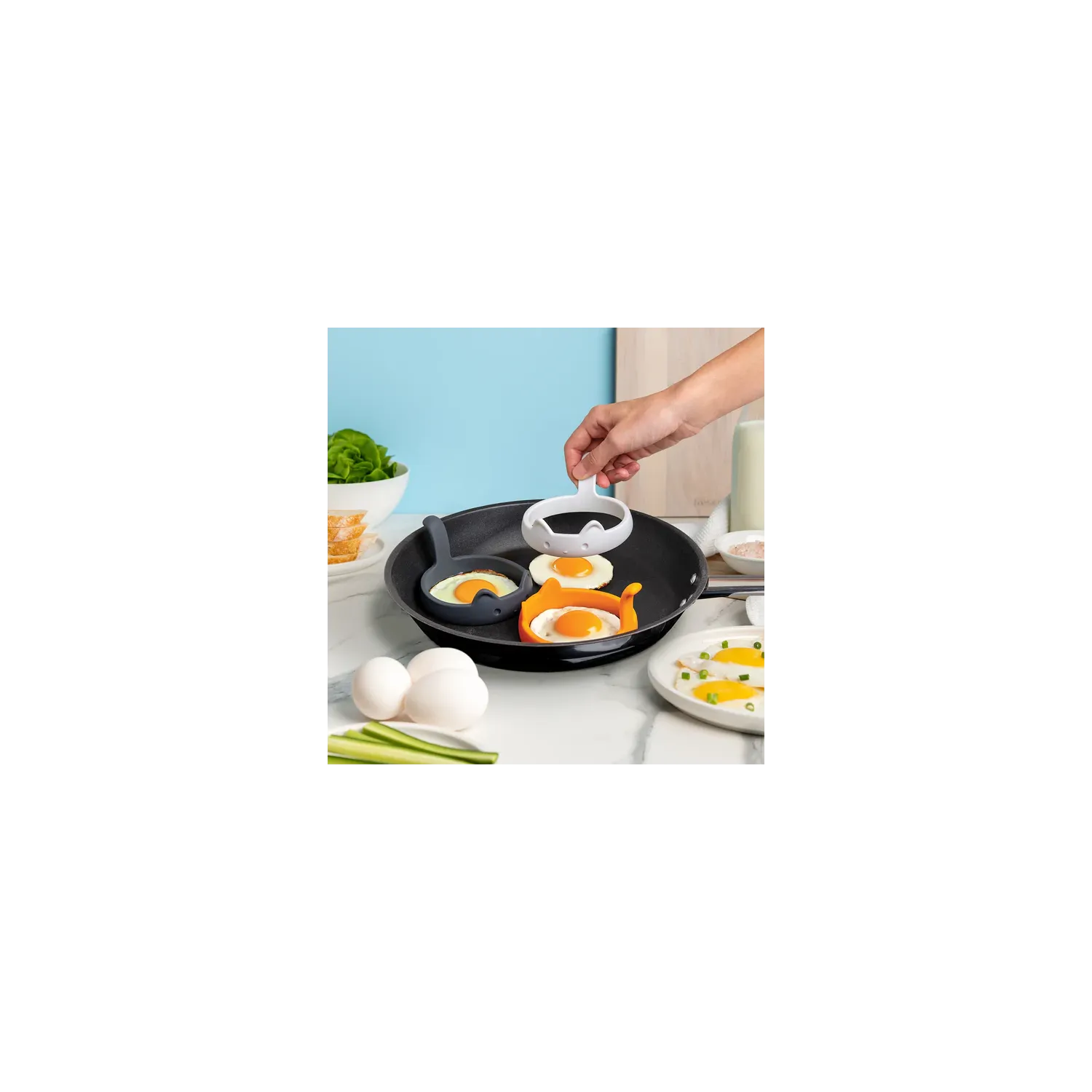 Incontra PanCats, un trio di anelli di uova a forma di gatto per friggere uova o frittelle!