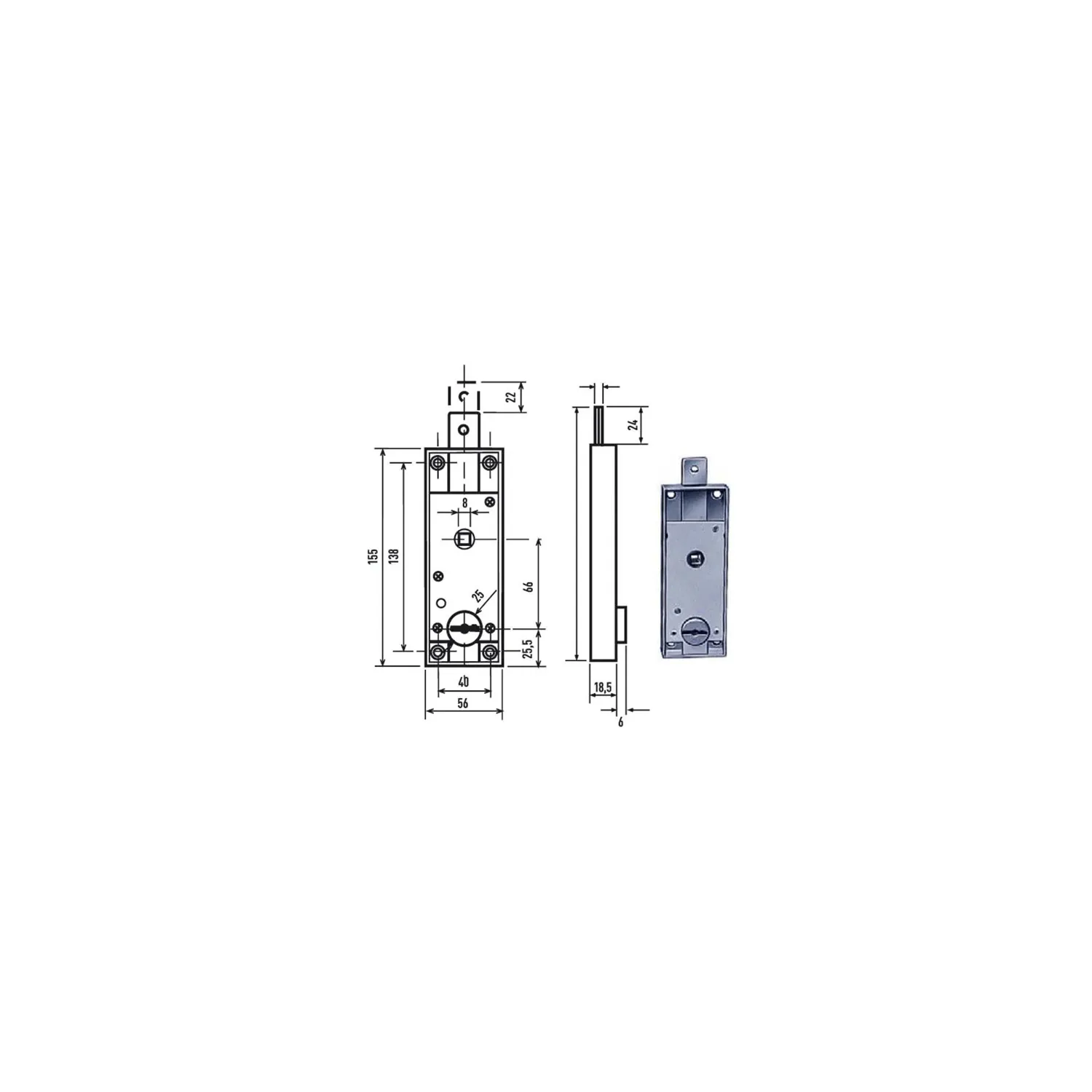 Serratura serrande catenaccio diritto - Cilindro ottone doppia mappa 1640 Mm.8,0