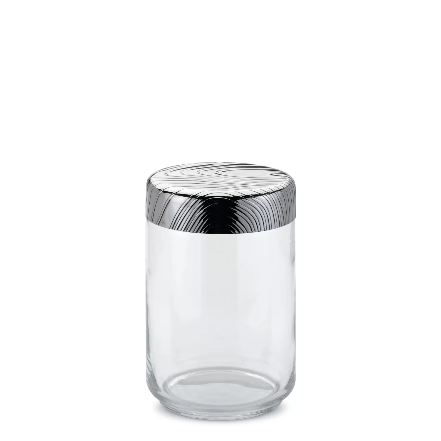 Veneer, Barattolo. Barattolo ermetico in vetro. Coperchio in acciaio inossidabile 18/10 con decoro a rilievo - Alessi.