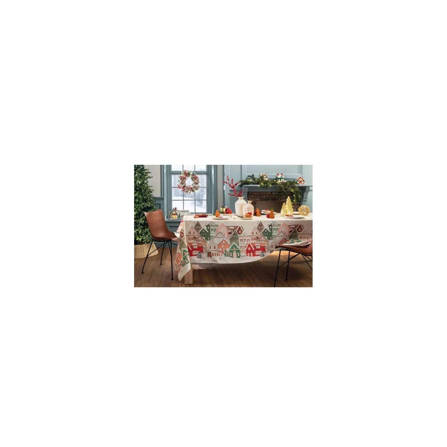 Villaggio, Tovaglia antimacchia Cm.155x155, 4 posti - L'oca Nera