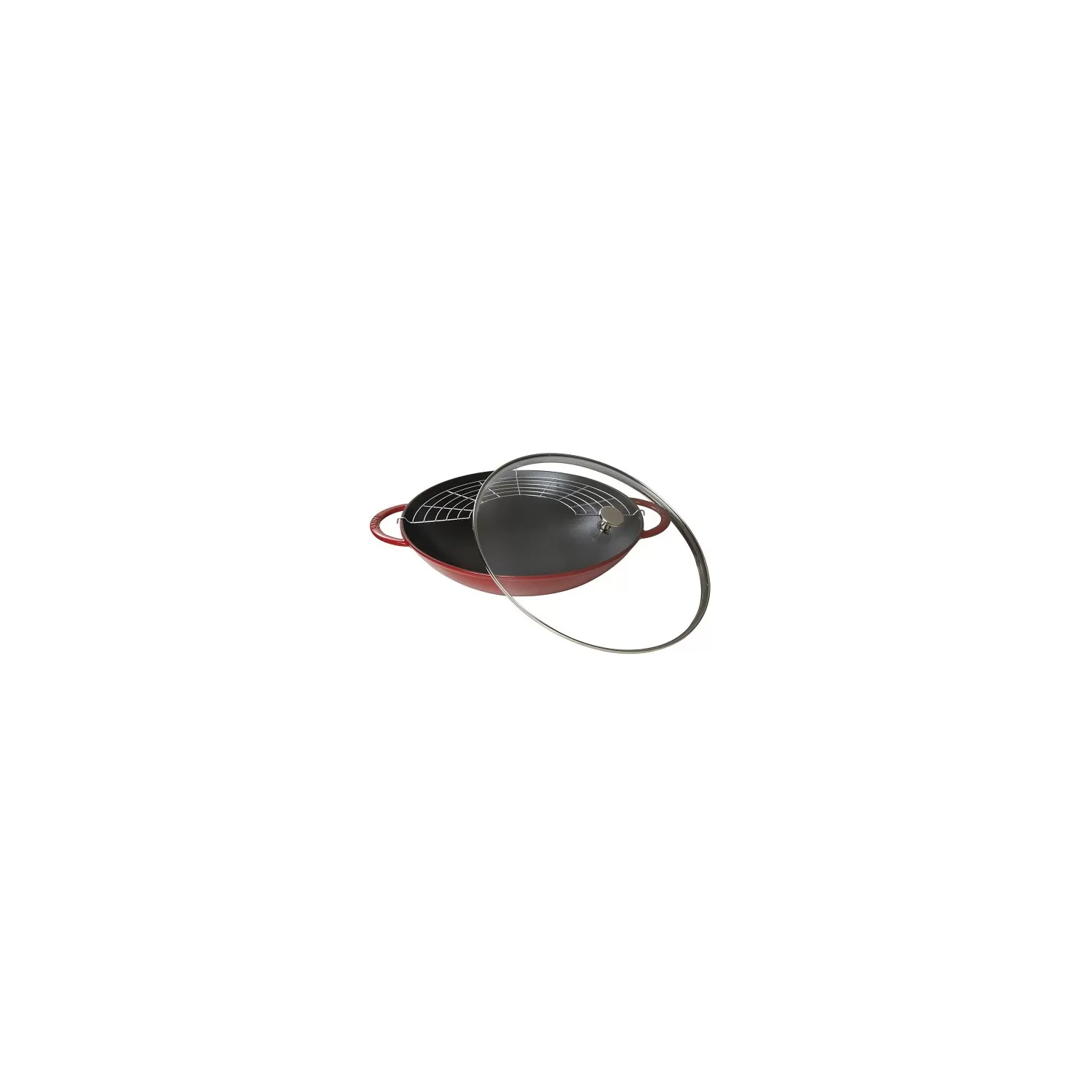 Wok in ghisa con coperchio rosso ciliegia Cm. 37 - Staub.