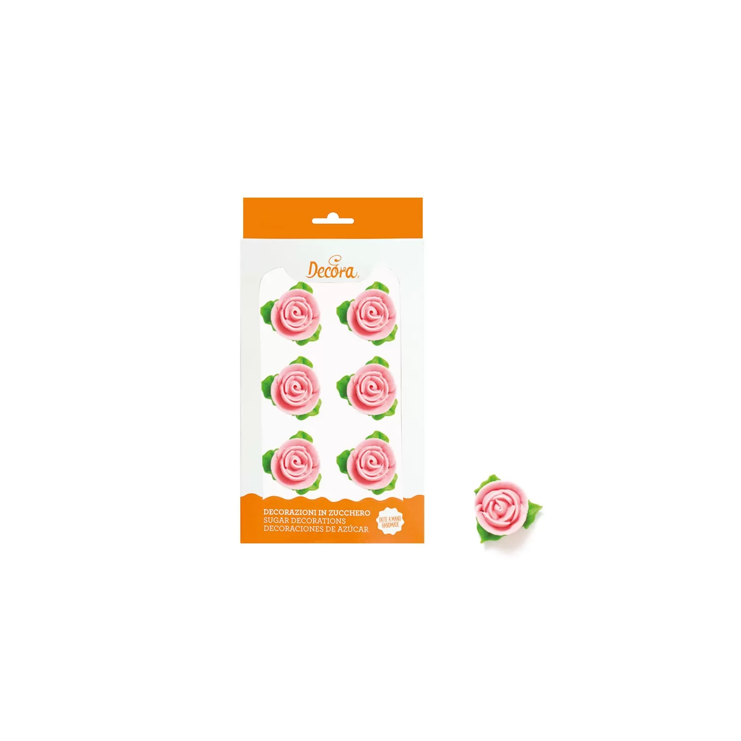 Cf 6 rose con 3 foglie rosa - Decora