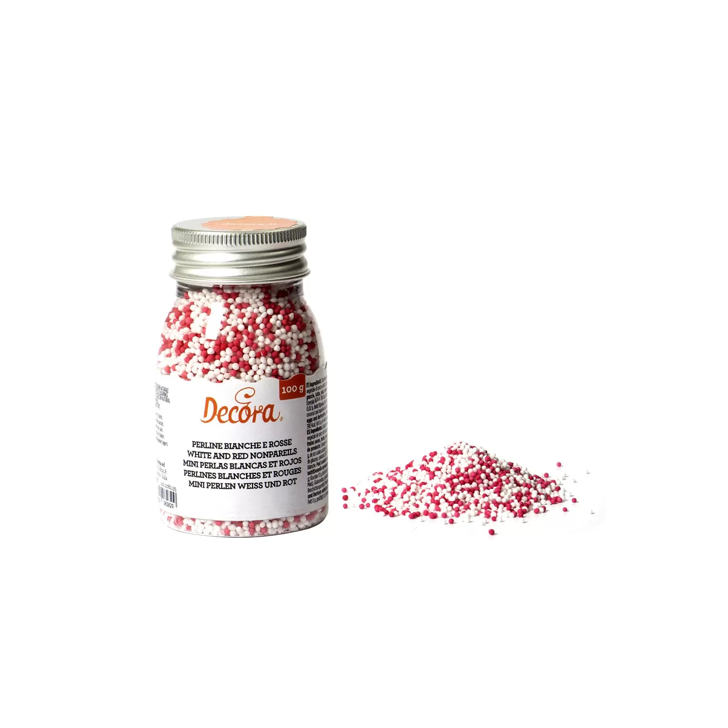 Cf 100 g perline in zucchero rosso e bianco - Decora