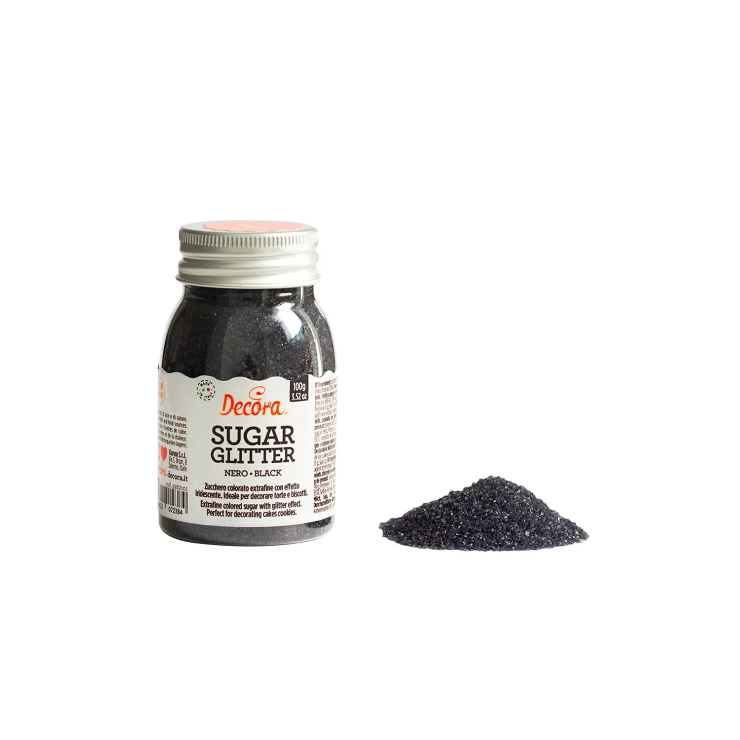 Cf 100 g zucchero glitter nero - Decora.