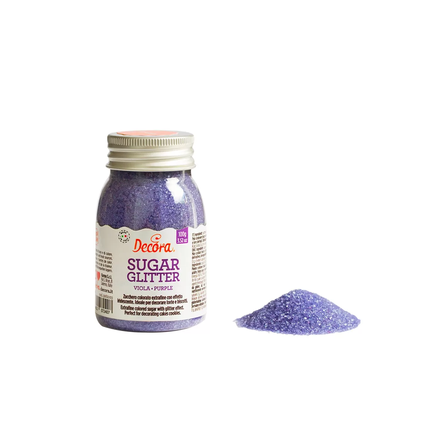 Cf 100 g zucchero glitter viola - Decora.